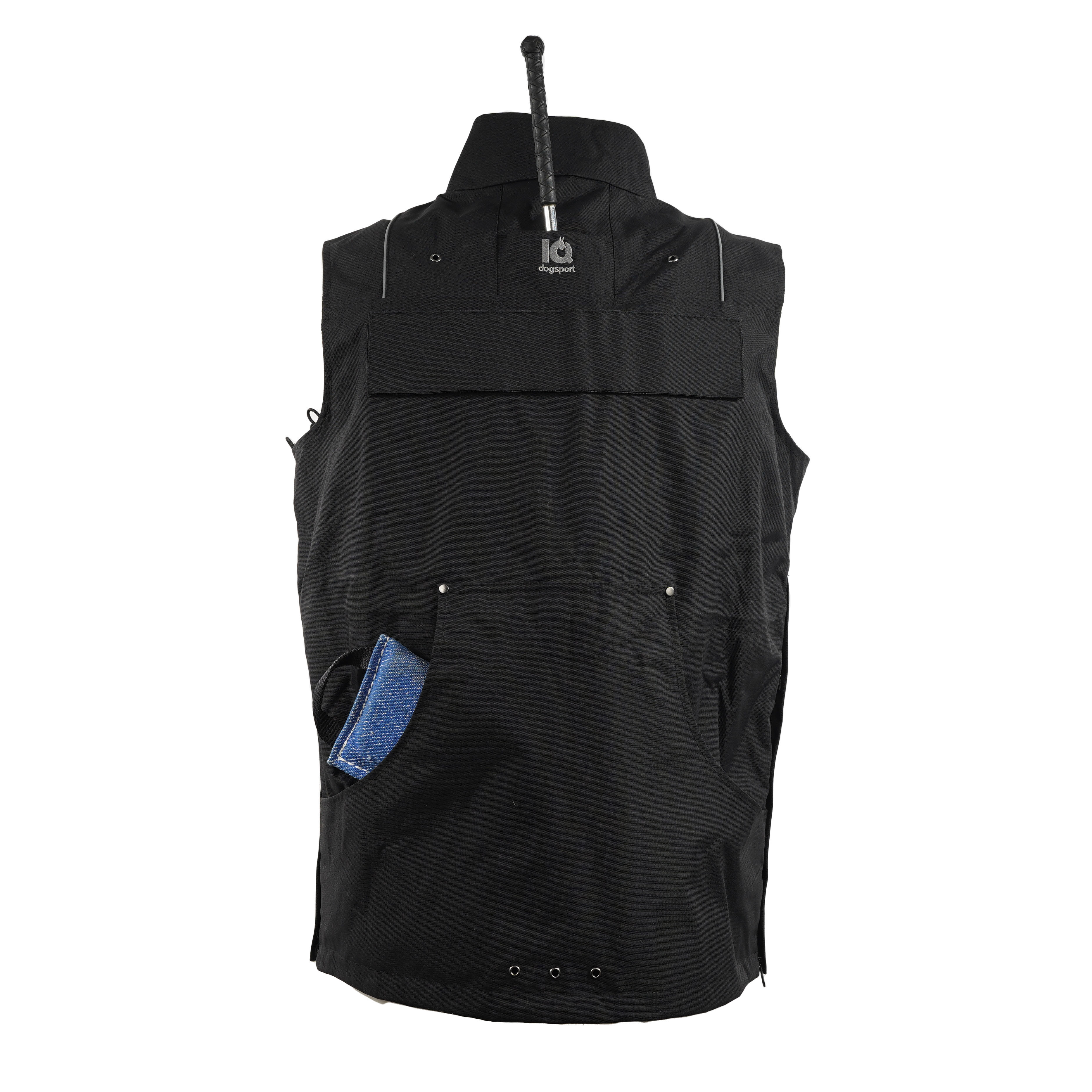 Patented chest pocket with drawcord system – two separate pockets can be combined into one large central pocket via zipper or Velcro and opened using a pull system. Ideal for centered reward training with bite pillows or toys.